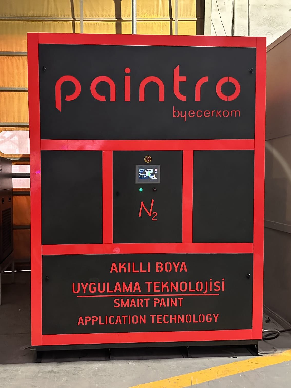 Toz boya ve yaş boya hatlarında kullanılan basınçlı havayı nitrojen gazına çevirerek üretimde verimliliği ve kaliteyi artırmaya, maliyetleri düşürmeye yardımcı olan akıllı boya uygulama teknolojisi.